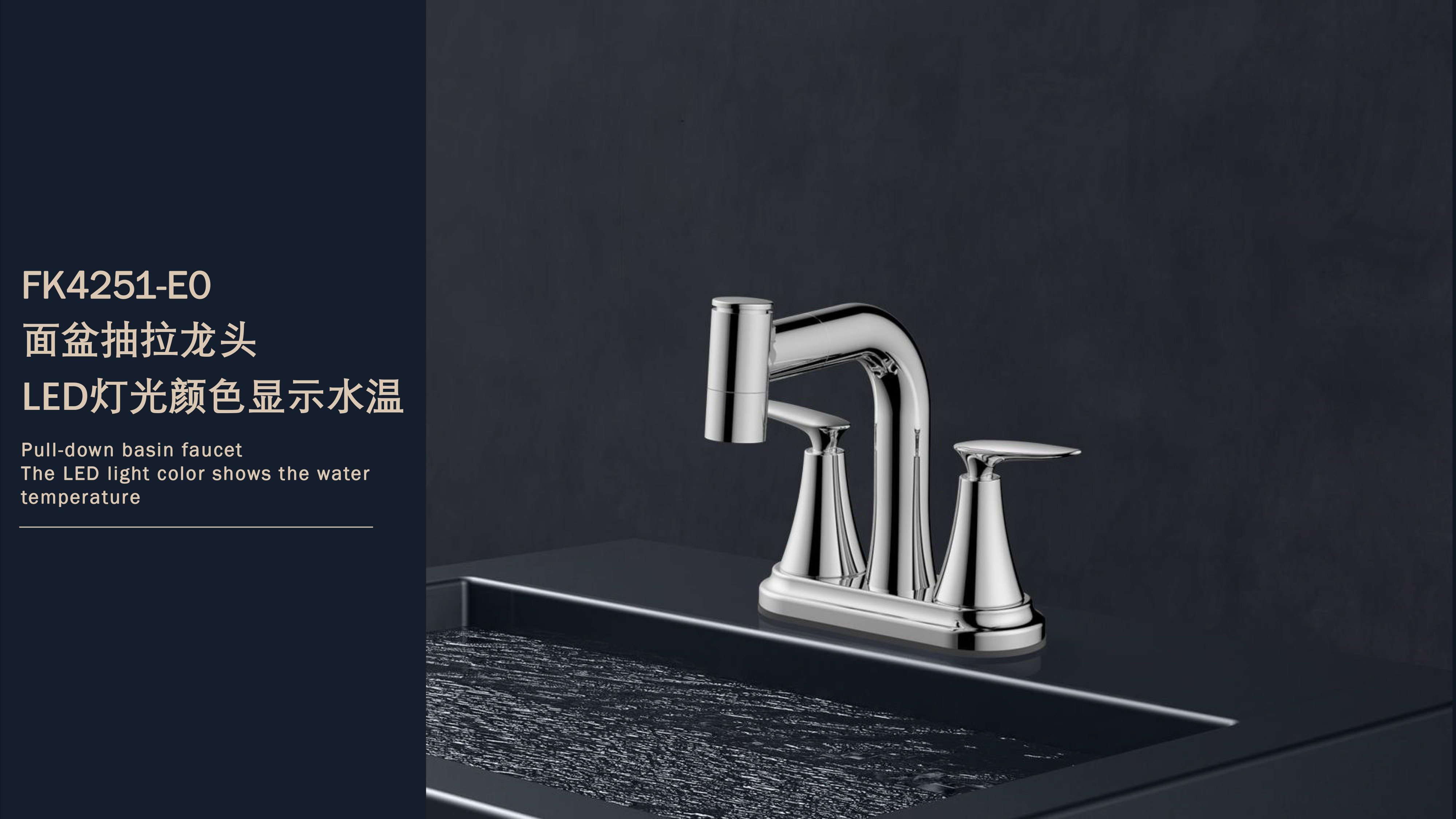 FB4251-E0 LED燈光顏色顯示水溫4”雙把面盆抽拉龍頭